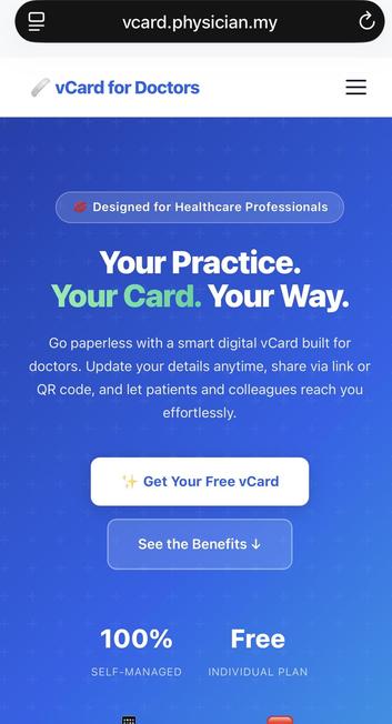 Free customisable virtual business card for doctors. Get yours today at https://vcard.physiciansmy